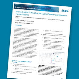 | 基于OptiFlow Turbo V 离子源的微升流速色谱技术平台,可以实现环肽类化合物(cyclic peptide)的高分辨定量(MRMHR)能力。 | 不要复杂的方法开发,就可以提高选择性:解析为什么使用高分辨率的MRMHR方法对目标化合物进行定量的策略更灵活。 | 基于OptiFlow Turbo V 离子源和 TripleTOF 6600+ 系统,可以识别和表征华体会平台小分子代谢产物。 |